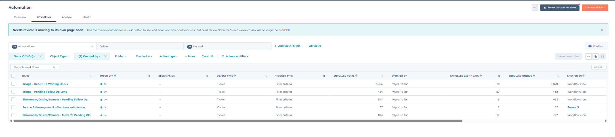 Built/maintained workflows for routing, escalation, notifications, and follow-ups